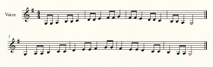 ритмическое упражнение - нижний голос хлопки, а верхний проговаривать на "та-та"; сольфеджирование и чтение с листа: